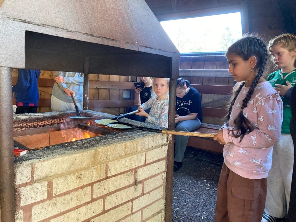 Kun kaikki olivat leirillä alettiin syömään iltapalaa. Me syötiin pizzaa.